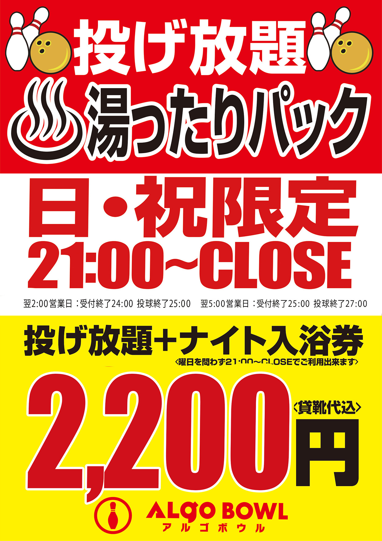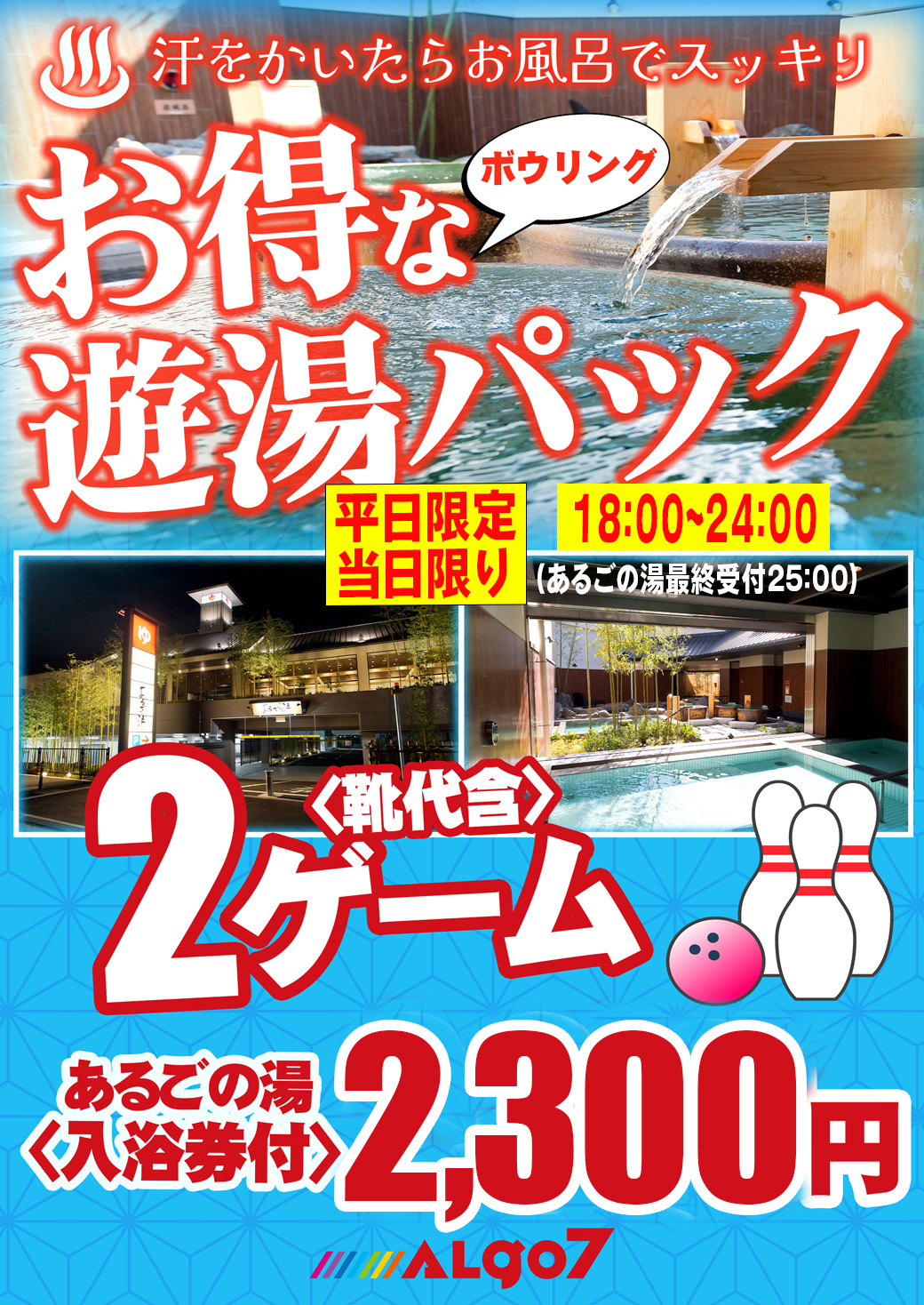 <アルゴボウル:ボウリング平日限定遊湯パック>