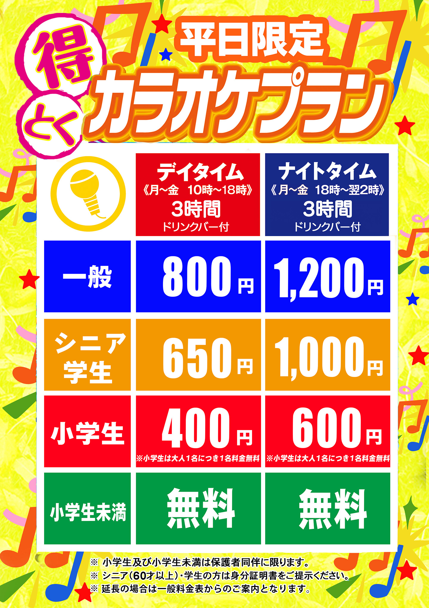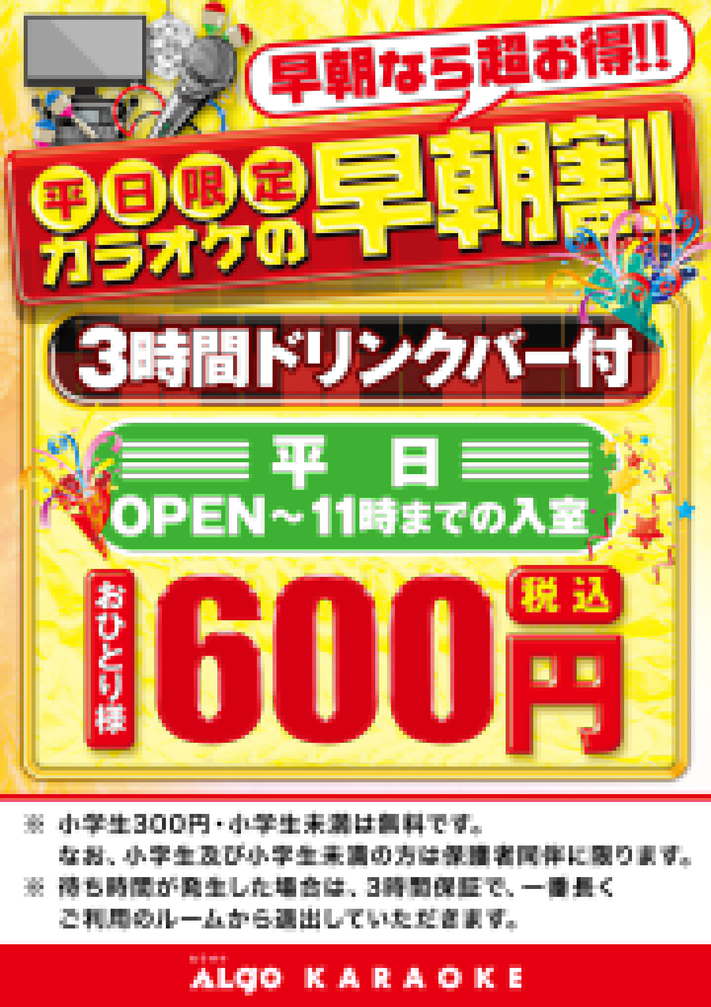 <アルゴカラオケ:カラオケプラン平日料金表>