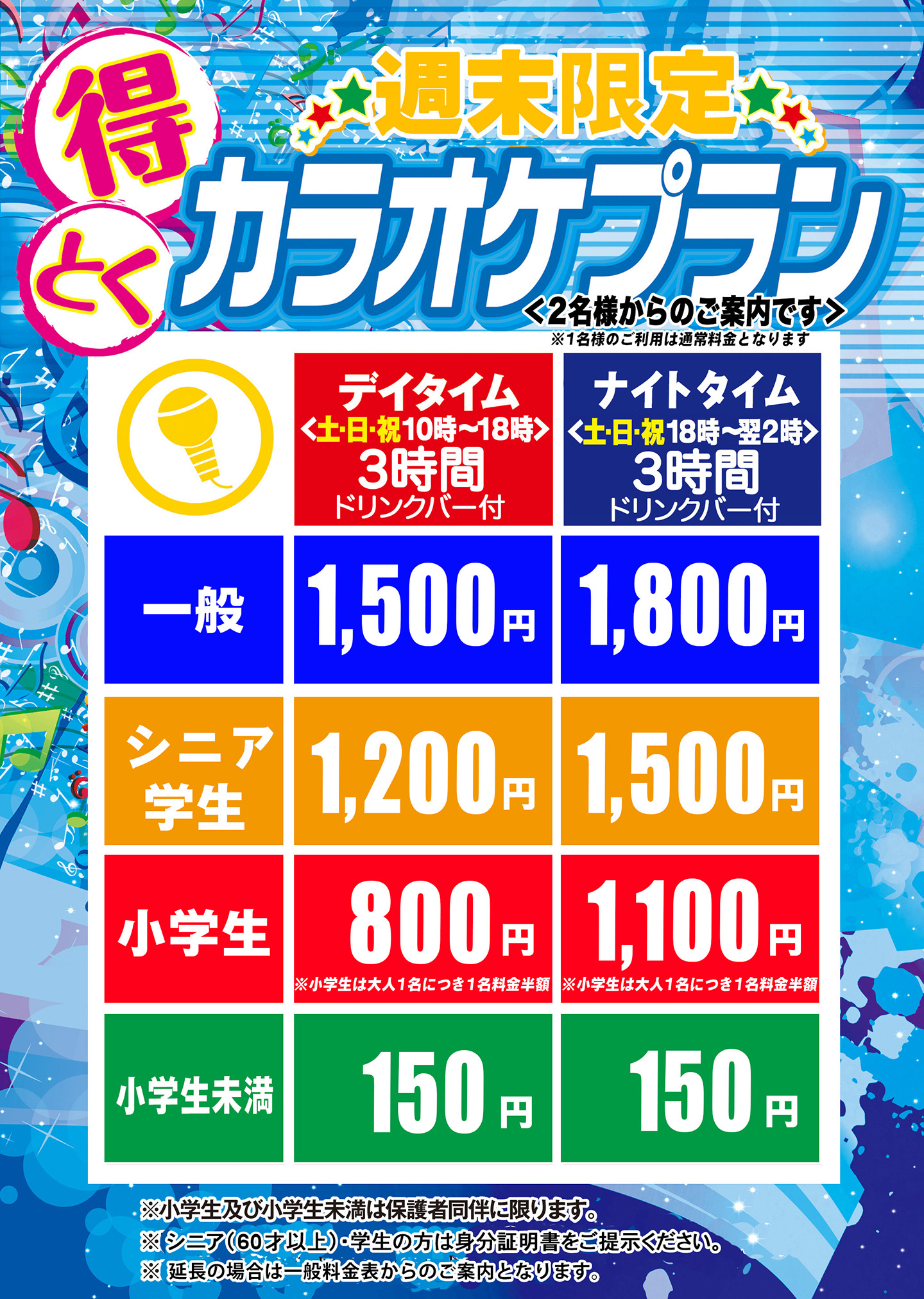 <アルゴカラオケ:カラオケプラン週末料金表>