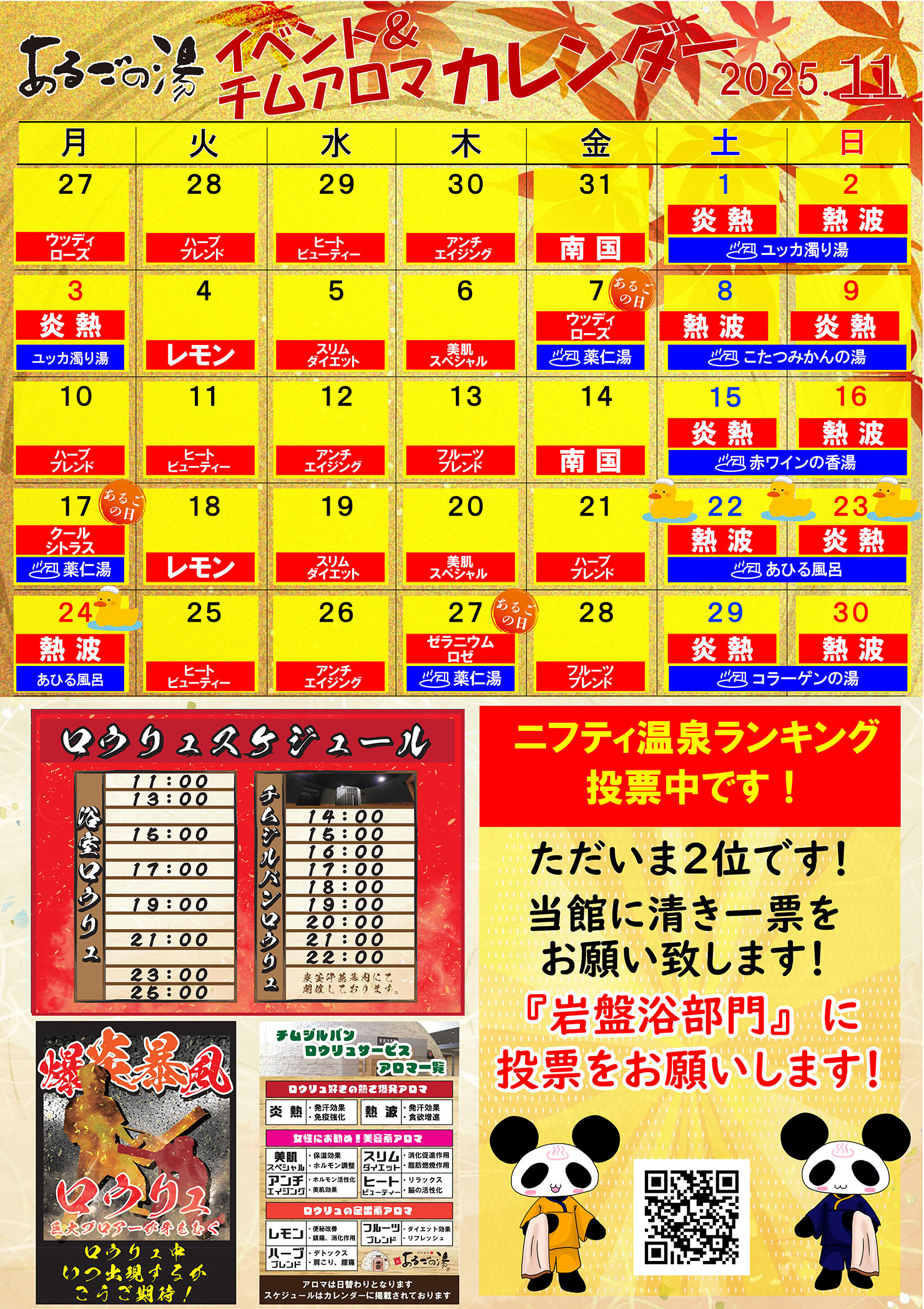 ・内湯(浅湯・深湯)・岩風呂・展望炭酸泉・塩ミストサウナ