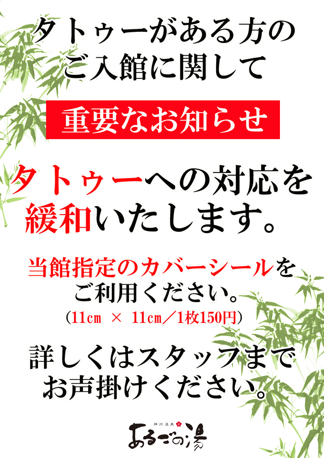 〈タトゥーがある方の入館に関しての重要なお知らせ〉
